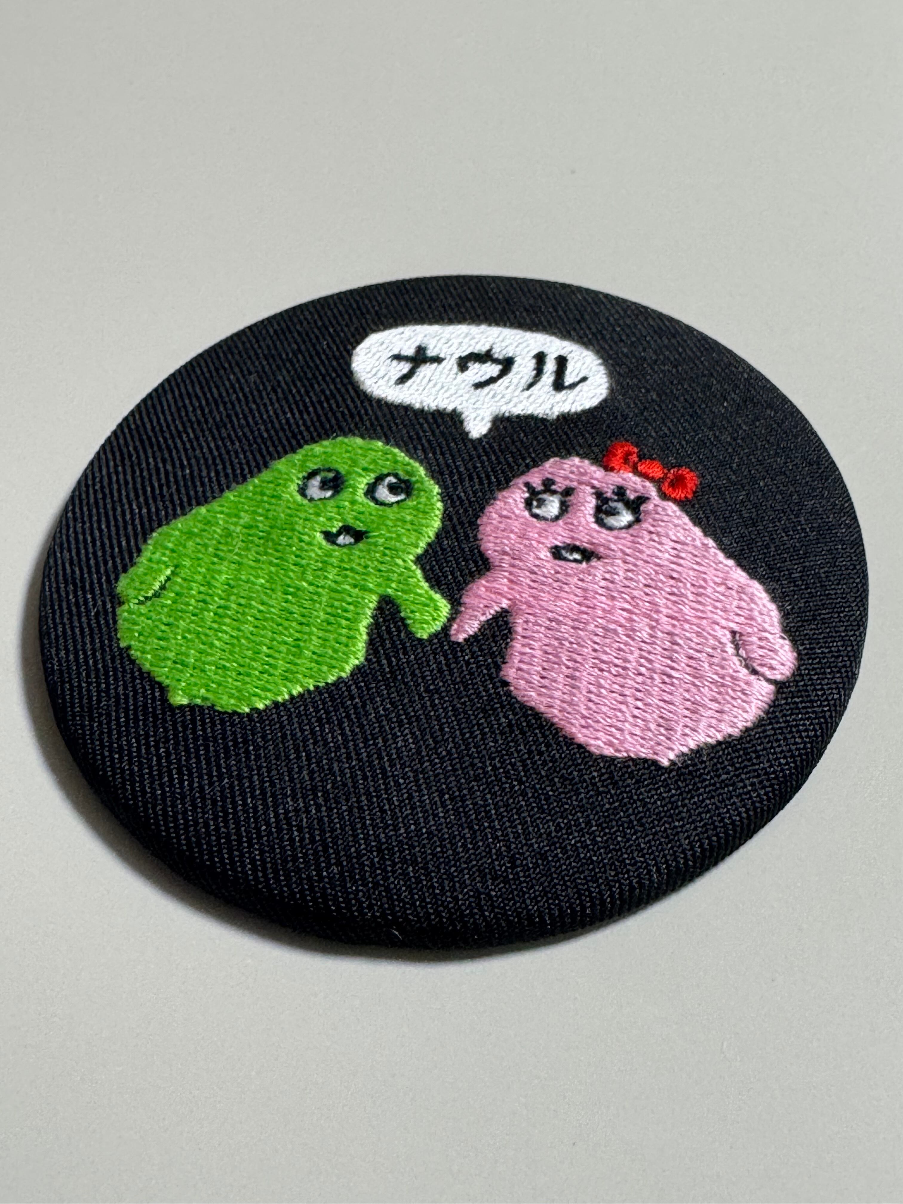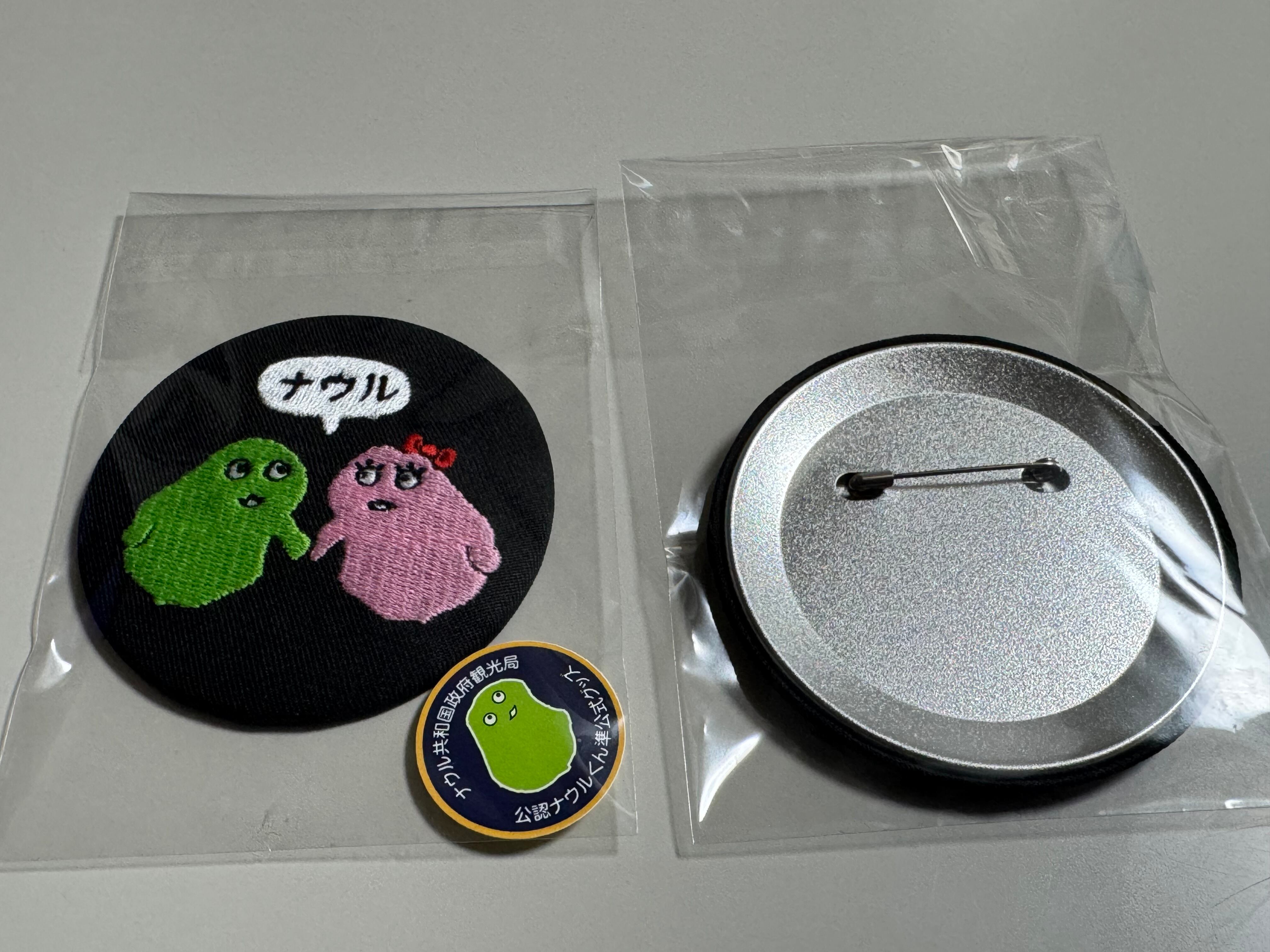 黒生地にナウルくん&ナウルちゃんの刺繍入りの缶バッジ「祈り」準公式グッズ